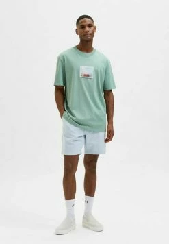 Sortie ⭐ Selected Homme RELAXROB O-NECK TEE CAMP – T-shirt Imprimé – Cloud Dancer Blue Print 🎉